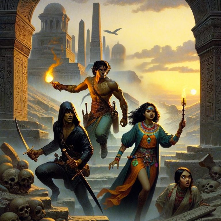 Torturé pendant de longs jours, il ne fût libéré que pour mourir dans les bras de son père. La faction rebelle fût désavouée par le Gouverneur des Marchands et ses membres furent envoyés voguer sur l’Océan des Confins. Pour honorer leur victime, les Marchands firent ériger le tombeau du Prince avec les plus beaux matériaux et le remplirent des plus beaux trésors. Mais il le truffèrent aussi de pièges mortels…